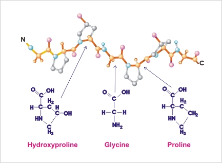 <骨精华>的主要成分是II型骨胶质(或称“骨胶原”)Kolla 2。Kolla一词源于古希腊语 kolla,意为“胶水“,拉丁语译为“胶质“。 II型骨胶质 Kolla 2从珍贵小鸡胸软骨专利提取,相比市场上由猪皮丶牛骨提取的I型或III型胶原,和人体软骨和关节结缔组织最吻合,具有更强针对性丶更高可溶性和更好吸收率,修复与再生关节软骨,消除关节疼痛,延缓骨质疏松。以下是II型胶原质Kolla 2的分子结构图:从中可见,II型骨胶质Kolla 2独特的高分子长链可在体内形成胶原蛋白网络,最终修复软骨,为软骨组织提供抗拉张强度。